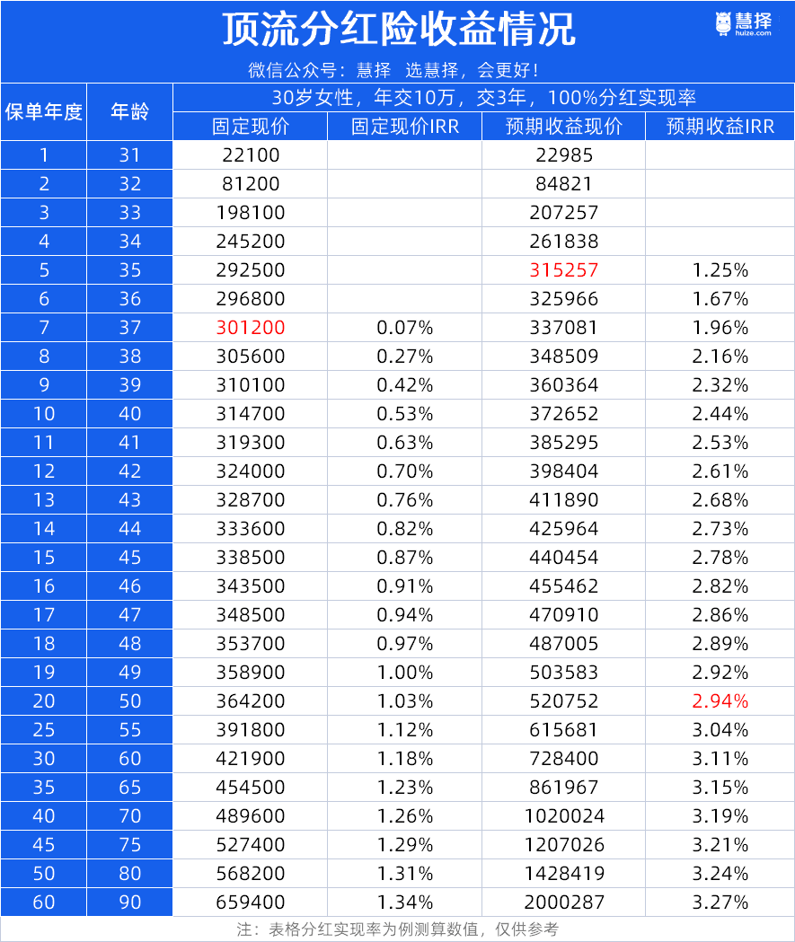 然后从第五年开始,每年能固定领1.72万块的利息,再加上1.3万左右的预期分红,每年预计能领3.5万左右。